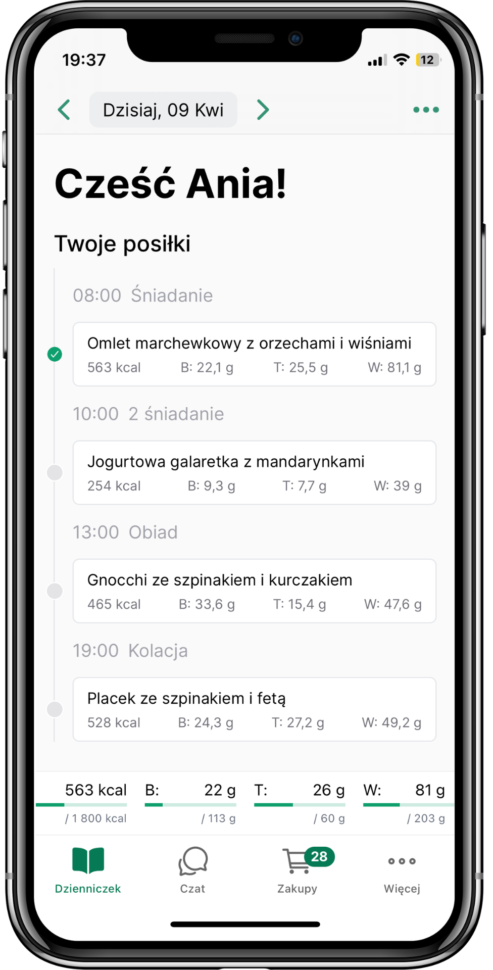 Dostęp do aplikacji z jadłospisem jest na czas współpracy – czas zaczyna się liczyć od otrzymania jadłospisu. Po tym czasie dostajesz jadłospis w formie PDF, dzięki czemu posiłki zostają z Tobą na stałe!