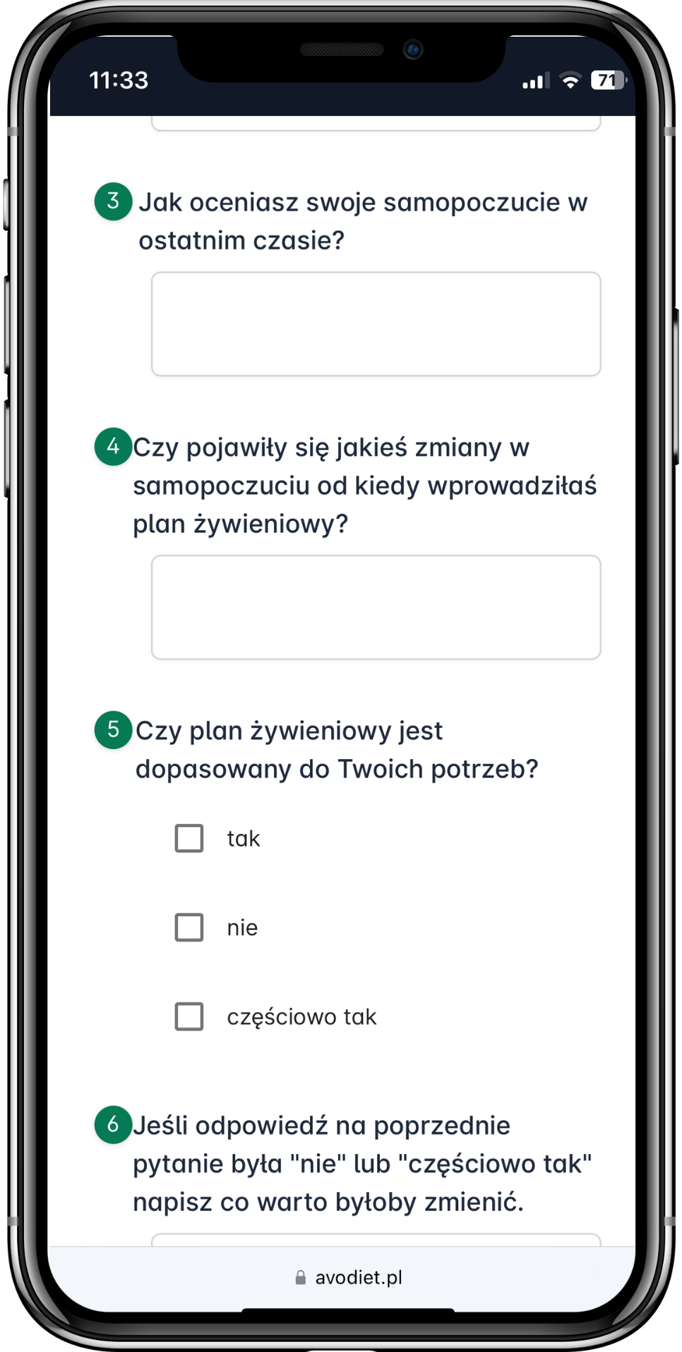 W ciągu 48h otrzymasz wiadomość na maila z ankietą oraz dzienniczkiem żywieniowym do wypełnienia i odesłania minimum 3 dni przed ustaloną konsultacją
